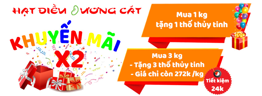 - Mua 1 kg hạt điều hoặc hạt hạnh nhân rang bơ Dương Cát, tặng ngay 1 THỐ THỦY TINH cao cấp.