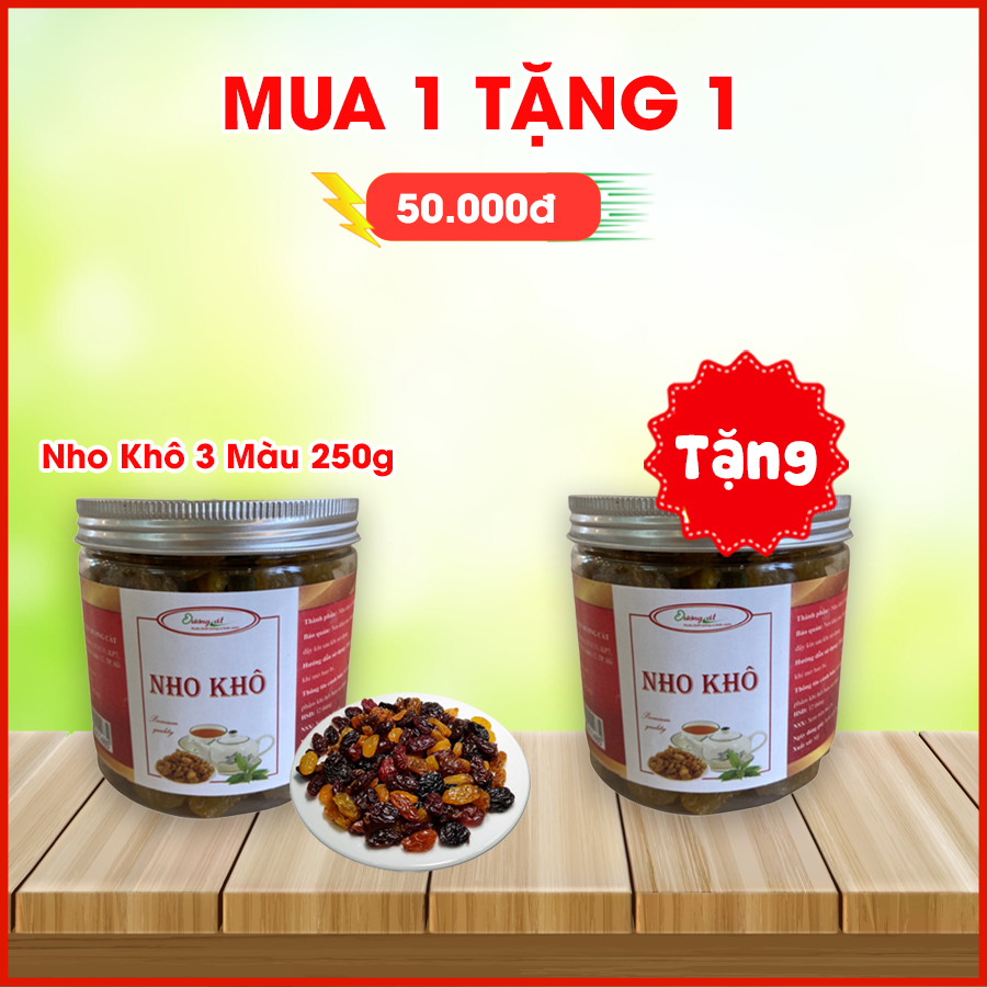 Nho Khô Dương Cát được đảm bảo chất lượng tốt, vị ngọt chua nhẹ. Bao bì đóng gói đẹp mắt rất thuận tiện để ăn trực tiếp hoặc làm quà biếu tặng. Nhiều kích thước và trọng lượng: 250g, 450g